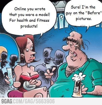 Online dating photos can be a slight misrepresentation of the way someone looks or it can be way off the mark! Image via Peeksi.com